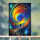 This ethereal artwork captures a solitary figure walking toward a radiant, swirling galaxy filled with vibrant rainbow light. The glowing cosmic vortex illuminates the scene, creating a powerful sense of wonder, mystery, and infinite possibility.