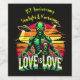 Under a vibrant sunset, an alien couple shares a tender moment. Their bright eyes shine with emotion, reflecting the love they have for each other. Above them, UFOs float in the colourful sky, creating a magical atmosphere that emphasizes the depth of their cosmic connection.