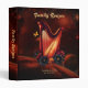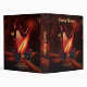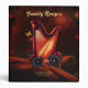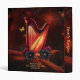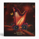 Cosmic melody, the magic of the harp. The harp radiates warmth and luxury, its golden strings and frame contrasting harmoniously with the black and orange flowers that adorn it. These flowers are vibrant and richly detailed, lending the instrument a natural beauty and a touch of magic. The background transports the viewer to a mesmerizing spacescape. It consists of deep blue and purple nebula clouds, interspersed with twinkling stars and shimmering planets of various sizes and colours.