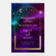 Cosmic Purple Teal Gold Sun Moon Stars Welcome Sign Acrylic Welcome Sign features gold sun, moon and stars with a gold frame on colourful mystical purple, teal and blue cosmic background. Inside the frame is your custom text in elegant white calligraphy script. Designed for you by ©2024 Evco Studio www.zazzle.com/store/evcostudio