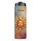 Cool thermal tumbler features AI-generated digital art illustration of a golden cosmic sun face on an abstract celestial background.  Personalize with name or monogram