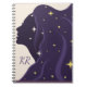 Add a personalized style to your stationery with a custom-made notebook journal. Beautiful Cosmic Universe Lady Purple with Gold Stars Notebook Journal. Personalize with initials or name. Great gift idea.