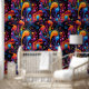 Infuse your space with bold, maximalist energy using this dynamic wallpaper, featuring a stunning array of rainbow swirls and bubbles. The vibrant design bursts with fiery oranges, electric blues, and vivid purples, all set against a striking black background. Perfect for creating a statement in any room, this eye-catching wallpaper brings a sense of movement and excitement, transforming your home decor into a lively and artistic masterpiece. generativecontent
