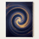 An abstract, dark celestial image featuring a brilliant, swirling vortex of golden and amber light against a deep blue, star-speckled background. The energy spirals inward, suggesting a dynamic cosmic event, a galaxy, or a portal.
