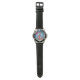 My husband loves the watch, he likes the dial, the graphics, the band, and it keeps perfect time.