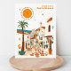 This postcard from the Costa Blanca in Spain is a gorgeous piece of art. It features a beautiful Mediterranean old city with white houses, a cobblestone street, a palm tree, and a big sun. It's a perfect greeting card for Costa Blanca residents, visitors, tourists, or fans.