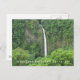 Photograph of the La Fortuna waterfall cascading down through the jungle printed with description. Postcard can be printed with out any text by simple erasing the words.