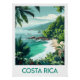 Tropical illustration of a Costa Rican beach with palm trees, lush jungle and turquoise waters. Perfect for exotic and calming wall decor.