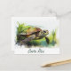 This postcard captures the natural beauty of Costa Rica's stunning coastline and its fascinating wildlife. The image showcases a vibrant green sea turtle, a beloved inhabitant of the country's beaches, as it makes its way across the sandy shore.