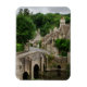 Vertical rectangular photo magnet with the bridge in the village Castle Combe with houses built in honey-coloured Cotswold stone with slate tiles in the Cotswolds, England, UK.