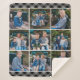 Une couverture de photo plaid confortable pour afficher les belles photos de famille capturées de votre séance photo de vacances. Le design moderne et simple comprend un collage photo de neuf (9) images en forme de carré avec un design de bordure en forme de buffle gris et noir. Crédit photo : Sunbeam Photography www.facebook.com/SunbeamPhotography