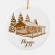 Cosy Log Cabin - Hygge or your own text Ceramic Ornament