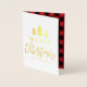 Envoyez à vos amis et à votre famille une carte de voeux de Noël élégante. Cette belle carte de Noël rustique présente les mots "Joyeux Noël" dans une police de caractères tendance avec des arbres de Noël en feuille d'or véritable, un espace réservé pour votre photo personnalisée, et un espace réservé pour votre salutation personnalisée. A l'intérieur, on retrouve une motif de buffle rouge et noir rustique.