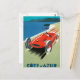 Vintage art deco stylized poster of a red roadster cruising along the French Riviera.