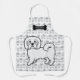 Destei's original cartoon illustration of a cute white colour Coton de Tulear breed dog. The dog design is placed as a pattern on the background of the apron as well as a larger size on the bottom. The top has a black dog bone silhouette together with a personalizable text area for a name.