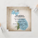 Pretty square wedding invitation done in a cottage chic style, with an antiqued looking background. Lovely graphics of a mason jar, with a country blue bow, with a country blue hydrangea bloom, in front. Personalize the black text for your special day. Matching wedding products available.