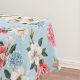 This tablecloth features a beautiful cottage garden floral pattern in soft shades of pink, blue and cream on light blue.