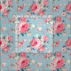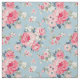 Cottage Pink Roses on Blue Background Fabric