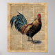 Cottage Rooster Vintage Dictionary Book Page Poster