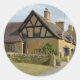 Autocollant photo rond avec les cottages à colombages de Shakespeare dans la ville de Broadway dans les Cotswolds, Angleterre, Royaume-Uni.