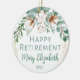 Celebrate a loved one's or co-worker's retirement with this personalized retirement Christmas ornament. Add the name and date of your choice to this beautiful cotton and green eucalyptus design.