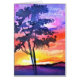Beau paysage coloré coucher de soleil rêve peinture de l'artiste Sacha Grossel d'un paysage de coucher de soleil rouge jaune et violet dans l'arrière-arrière avec une ombre d'arbre au premier plan. Art original coloré en aquarelle.