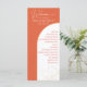 Un programme de mariage moderne en orange vif et blanc simple. Cette nuance d'orange s'appelle Verona Sunset. Détails en faux or, une silhuette d'une fleur délicate. Typographie moderne et détails de conception de formes voûtées.