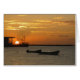 Coucher de soleil sur le bord de mer de Cozumel. Bateaux de pêche contrastant avec la jetée moderne du ferry.