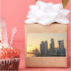Un autocollant photo rectangulaire avec les gratte-ciel dans la ligne d'horizon du centre commercial de Doha, la capitale du Qatar, pays du Golfe Arabique, au coucher du soleil.