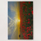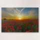 Joli coucher de soleil sur les puzzles de champ de pavot.