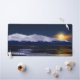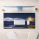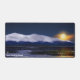 Lumière du coucher du soleil reflétée par l'eau et la fonte de la glace de mer juste au large des montagnes côtières enneigées. Ajoutez votre propre texte.