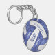 Cette équipe de couleurs bleues et blanches colorent le porte - clé de volleyball féminin avec un motif kaléidoscopique floral mélangé avec les panneaux de volleyball bleu et un motif tourbillon abstrait artistique mélangé avec les panneaux blancs - son nom, position du tribunal, nom de l'équipe et année scolaire/club sont personnalisables sur le devant, tout comme son numéro de maillot sur le dos surplombant un simple volleyball graphique - par couture katz_d_zynes