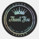 Merci sticker décoré avec une couronne, cadre rond et étoiles. Fini avec un effet de dégradé électroplaqué haut de gamme avec espace pour la personnalisation avec message texte personnalisé ou logo d'entreprise.