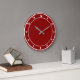 Cadran rouge, chiffres d'heure blancs, couleur de main gris, forme ronde et horloge murale en acrylique. Peu de combinaisons de couleurs pour ceux qui préfèrent un design de couleur simple et minimal. Horloge pour vérifier votre heure et décorer aussi votre mur. Disponible également sur d'autres tailles et styles.