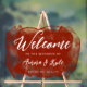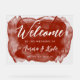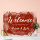 Signe d'accueil en acrylique mariage avec des polices blanches contre un éclat d'aquarelle rouge profond chaud pour un look translucide. Bienvenue et vos noms dans un script charmant. Mariage acrylique couleur rouge signe d'accueil personnalisé avec vos noms et date de mariage et emplacement du mariage. Tout le texte est personnalisable selon vos besoins.