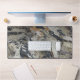 Les belles couleurs du noir, du gris, du marron et du blanc sont marbrées et tourbillonnantes sur ce morceau de bois flotté. Complète de sable, cette photo abstraite apporte une touche unique à votre bureau.