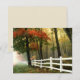 Cette carte d'encouragement est plate (non pliante) et présente une photo d'arbres d'automne contre une clôture blanche. Le dos comporte une écriture des Proverbes : Faites confiance au Seigneur avec tout votre coeur, et ne penchez pas sur votre propre compréhension. De toutes vos manières, reconnaissez-le, et il fera droit à vos chemins.
