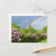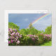lilas de lavande fleurissant parmi les arbres verdoyants avec une voûte arc-en-ciel magique au-dessus