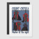 Black cats with crimson capes and golden amulets on a blue background; a playful vampire theme, bold contours; gothic fantasy meets nocturnal charm to create spooky and fun Halloween looks.