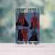 Black cats with crimson capes and golden amulets on a blue background; a playful vampire theme, bold contours; gothic fantasy meets nocturnal charm to create spooky and fun Halloween looks.