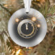 Circle acrylic ornament with an image of a beautiful black and gold clock counting down to the new year, and three gold glowing orbs. The back has an image of gleaming brushed silver and optional text. See matching round premium ornament. See the entire New Year Ornament collection under the HOME category in the HOLIDAYS section.