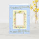 Pale blue tiny gingham background, with bumble bees. Floral frame to insert your photo.