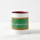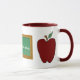 Personalize this adorable teacher's mug with your own text. Country style artwork of two red apples, on either side of a green chalk board. Teacher's name, in white text is customizable to say anything you want. Makes an adorable Teacher's gift mug for any holiday or special occasion.