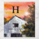 A sunlit country scene with a colorful evening sky and sun low in the sky and a white barn and large autumn tree portrays the humble origin of this fine wine from Hannah's exquisite varietals. However if your name is not Hannah, you may customize all 3 lines of text with your info.