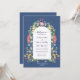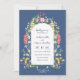 Delicate wildflowers in light and bright watercolors are arranged around the central arch of the invitation. Calligraphy and modern sans serif font combines for a modern simple look, in harmony with the sweet wildflowers. Dark blue inked fonts further accentuate the wild and natural feel. Placed on Country Blue background.