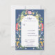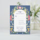 Delicate wildflowers in light and bright watercolors are arranged around the central arch of the invitation. Calligraphy and modern sans serif font combines for a modern simple look, in harmony with the sweet wildflowers. Blue inked fonts further accentuate the wild and natural feel. Placed on Country Blue background.