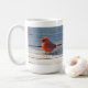 Lively country Cardinal on wooden bridge, makes a cheery start to the day ! Cardinal Mug is available in several sizes, styles including travel mug.