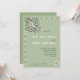Sage green invitation with warm white and black and grey text and accents. Colours can be customized in the Design Tool. All text is editable.