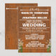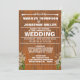 Textured Brown Wood Background with Bold White Lettering and white flowers. Add your wedding details for a one of a kind wedding invitation.