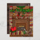 Personalized Christmas cards. Edit the message on the back of the card. Hand drawn country and westerns themed holiday card with cartoon cowboy boots hanging on the fireplace mantel instead of stockings.